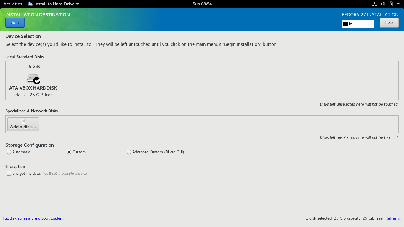 Download Fedora-Workstation-Live-x86_64-27-1.6.isoStart your Virtualbox and mount Fedora-Workstation-Live-x86_64-27-1.6.iso